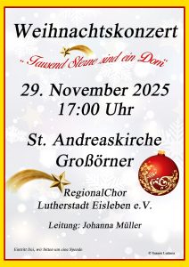 Der „RegionalChor Lutherstadt Eisleben e.V.“ besteht seit Mai 2010. Zurzeit sind wir 30 Mitglieder. Unser Einzugsbereich erstreckt sich von Wippra, Greifenhagen, Harkerode, Großörner über Blankenheim und Helbra bis Eisleben.